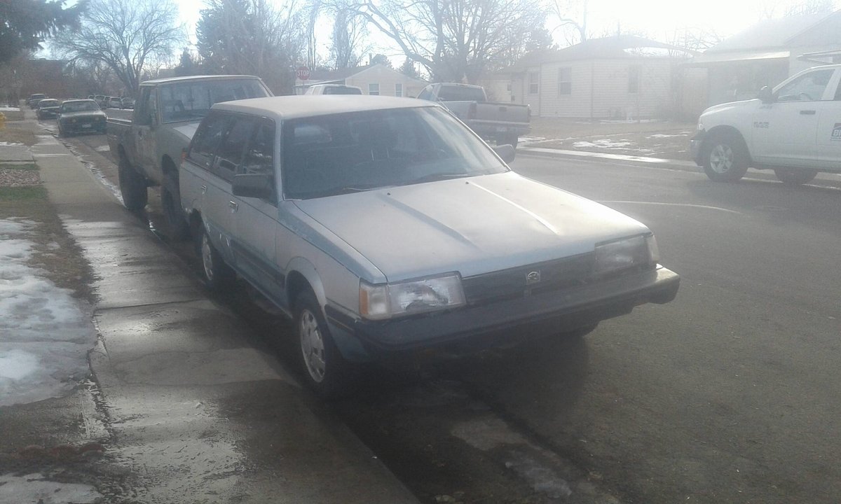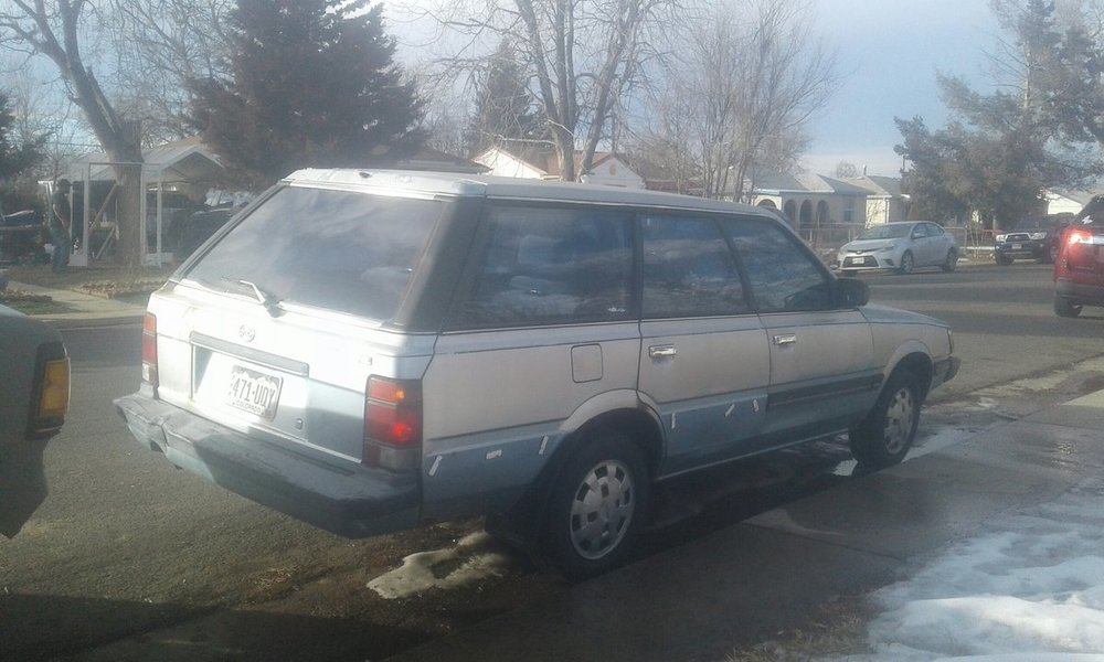 The back story on this 88 GL: This guy Bryce and a business partner started an auto detailing and tint shop in boulder, CO 14 years ago. The first shop car was this Subaru! I spotted her while walking my dog and had to chat the dudes up on the gl! I worked there for a year because it was right across the street from where I lived with my gf at the time, plus i could bring my dog with me to work. I was coincidentally finishing my ej22 swap on my 86 GL. This poor car was abused by college kids at times, and drove for years with a leaky head gasket, but routine oil changes. Still, at least once a week I would hassle him that I have an ej22 and harness, so what's up? Anyway they sold the company and came out pretty nice because the location is ideal, in the same complex as high end independent german, swedish and japanese repair shops. Every auto related shop there has a shop race car, including the little tint shop, and they have the only Subaru, a slammed brz they only did exotics and classics during the summer and new audis and bmws from dealerships during the winter when I was there, so they were quite successful. So I ran into Bryce a couple of times at cars and coffee, but he calls me the other day and tells me the new owners want these "pieces of crap" off the property and the Subaru means a lot to him, and he knows that I'll give her a good home. My response was a dumbfounded "you really thought of me for that?" Probably the biggest car related compliment i have ever received! Or maybe just advantages to being weirder than the other sube guys in boulder (all wrx boy racers here lol) They were hoarders and also had an 88 Honda accord, a 80s vw jetta, a 1990 Mitsubishi montero, and an 85 toyota tercel 4wd as shop cars, all of which went to good homes as well, so super nice guys those two. I think I'll fix the head gasket and rust, and pay it forward. Get someone into, or back into a third gen GL on the cheap. But i am keeping the premiers and probably the dual range. Another little gift was an 8 spoke in the spare tire. I only need two more for two full sets of spoke steelies!