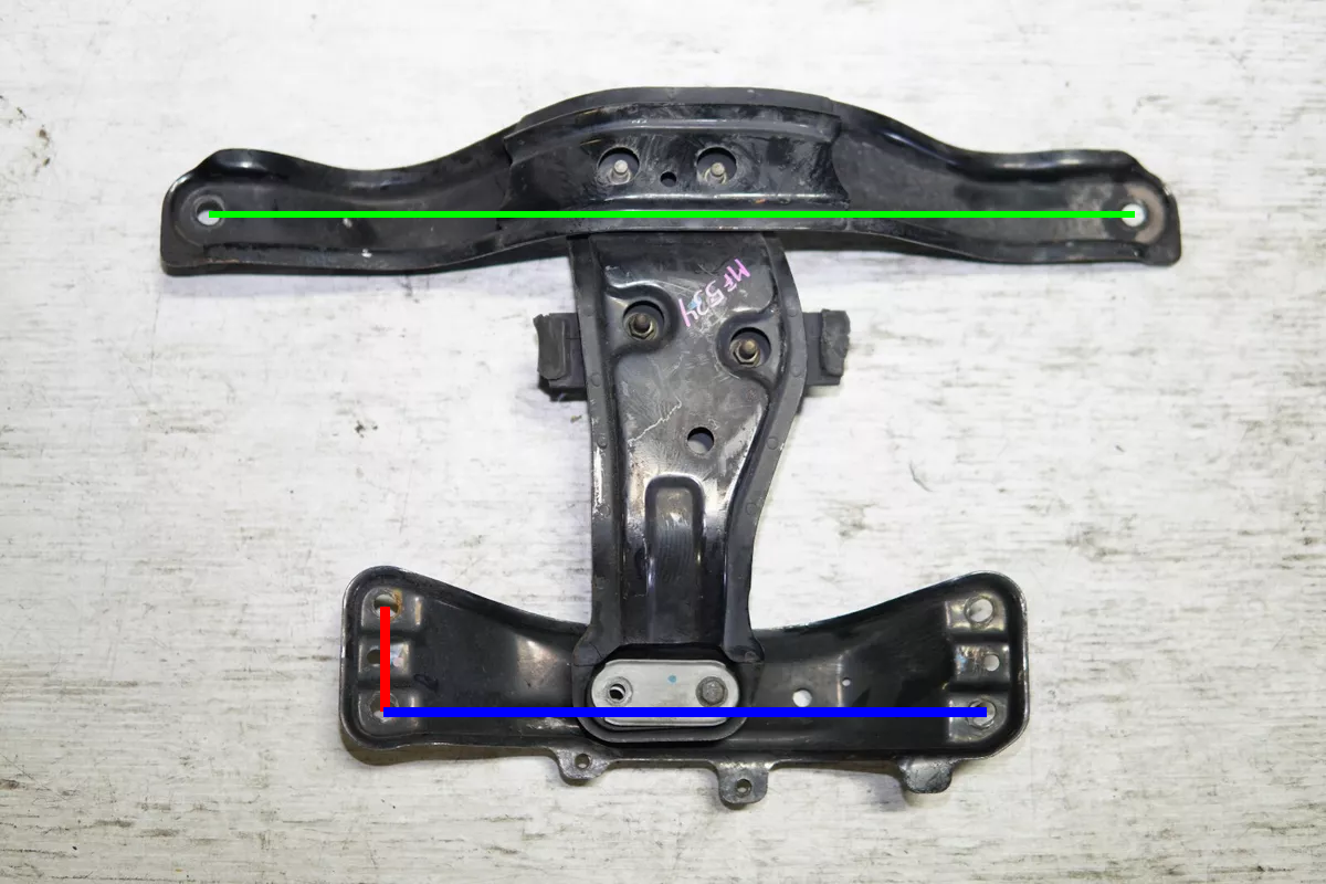 Posted this in the new gen forum but this might be a better place. I'm putting an sti 6 speed into my XT6 and looking for a crossmember. My car started life as an automatic so I don't have the XT6 manual crossmember and finding one is gonna be impossible, and don't have a welder so would rather not go custom. Is there any EJ (or other) crossmember that will work? Here are the measurements (all from the centers of the bolts) Green line: 20 and 5/8 inches Red line: 2 and 3/8 inches Blue line: 13 and 1/2 inches